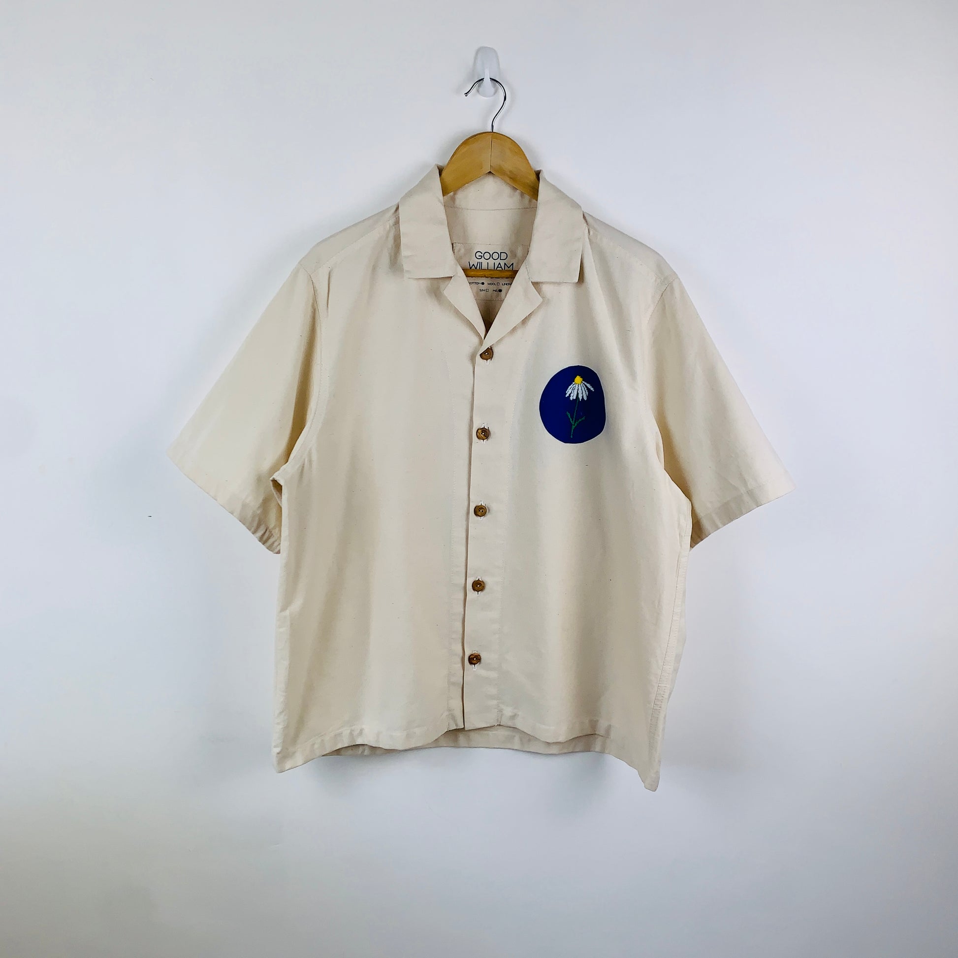 Hand embroidered daisy on chest